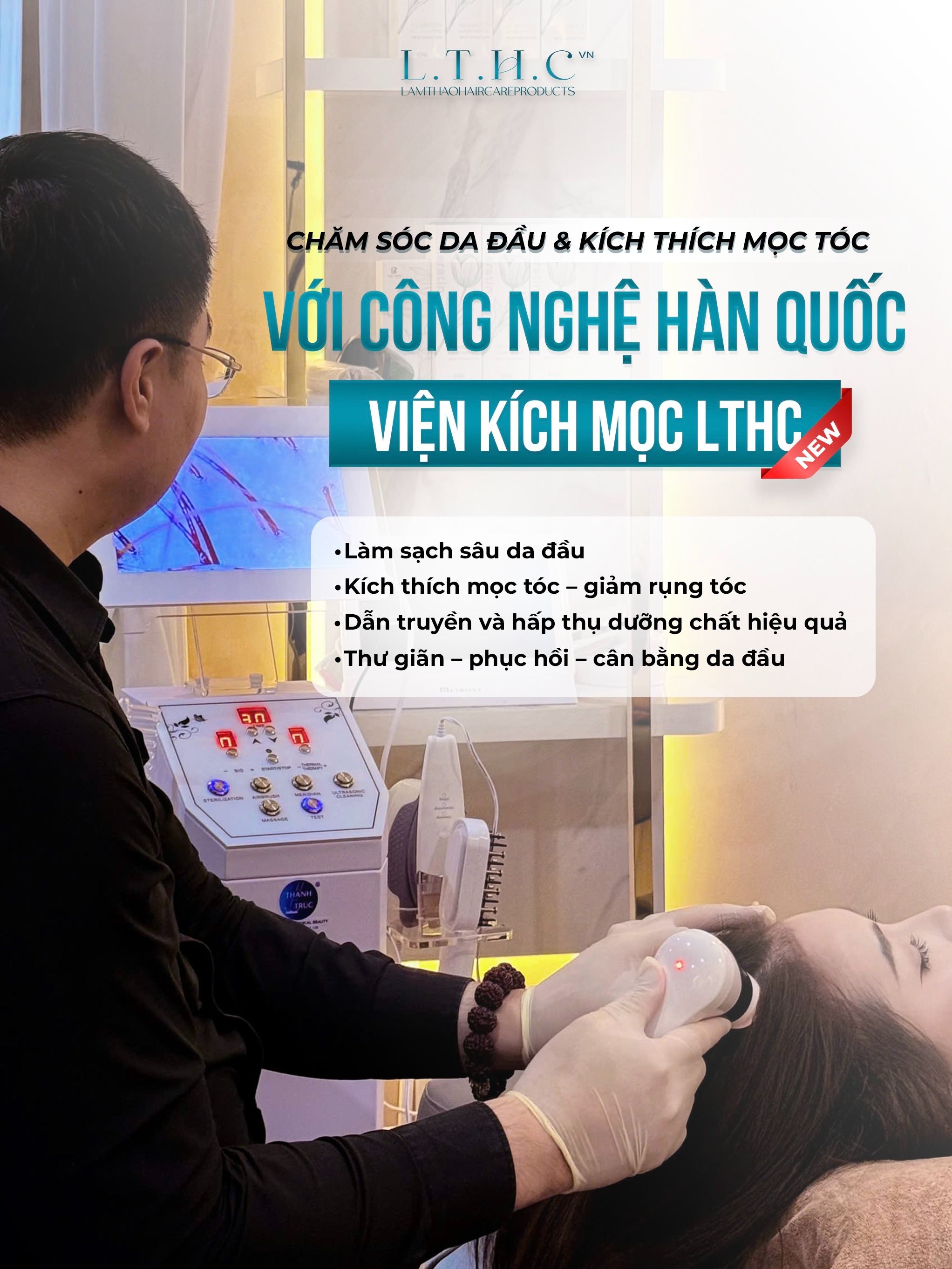 Khác với các mô hình dưỡng sinh hay spa thông thường, Viện Kích Mọc Tóc LTHC VIETNAM không chỉ dựa vào thao tác thủ công, mà dựa vào nền tảng khoa học – y sinh học ứng dụng.